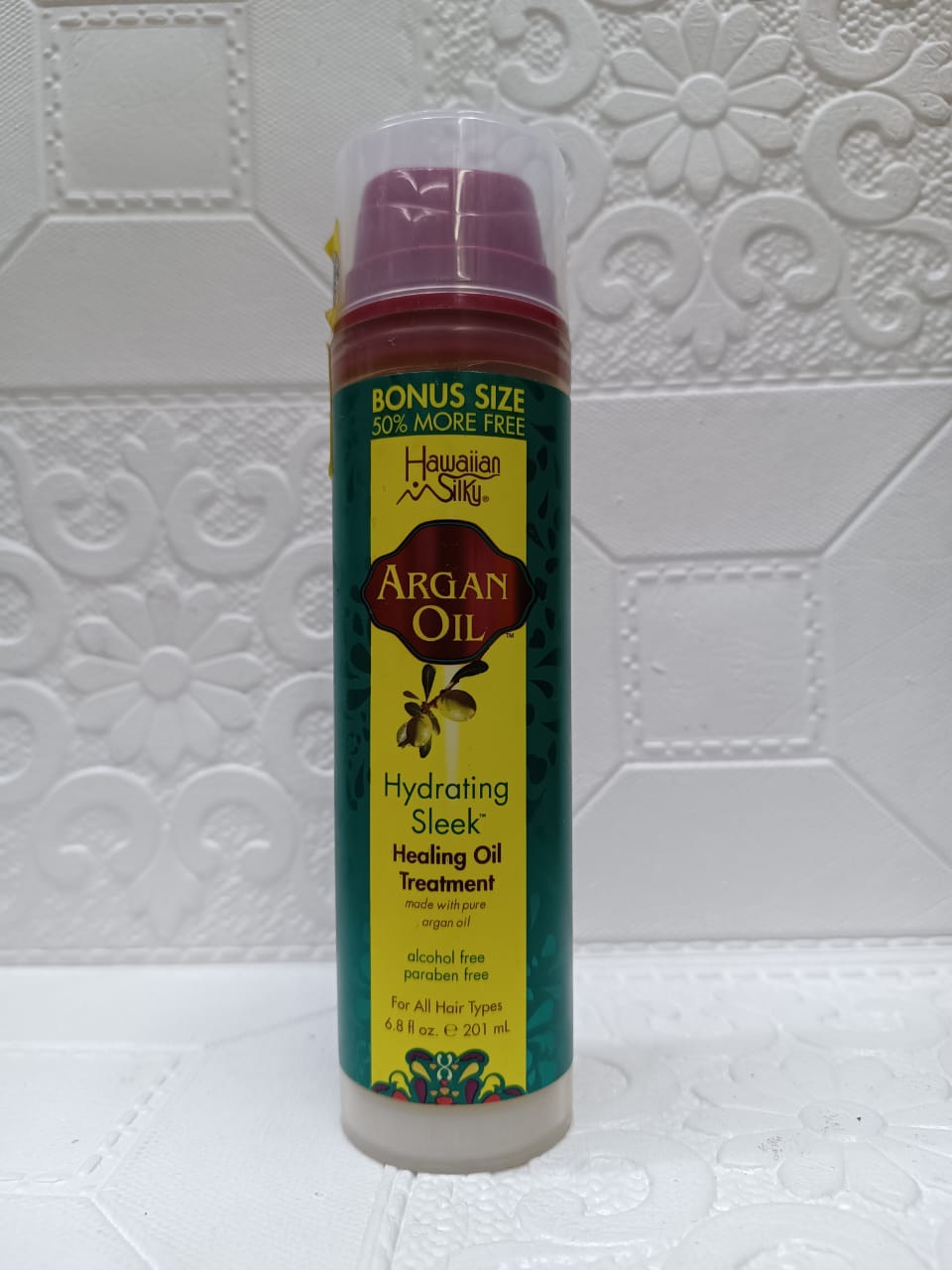 Hawaiian Silky Argan Oil Hydrating Sleek Healing Oil Treatment is enriched with fatty acids, vitamin E.